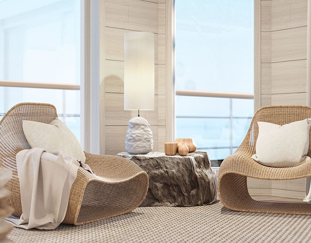 Leading design studio, Winch Design, now includes a sustainable materials specialist among its in-house team. Some of their favourite materials to incorporate into the studio’s designs include BeLeaf, a plant-based material crafted from real teak leaves that are naturally shed and responsibly harvested and are fully biodegradable and vegan. “Each Marche. “We integrated a thoughtful selection of environmentally-friendly materials such as reclaimed seashell composite, eggshell-textured walls and Flax, a versatile natural fibre derived from the stem of the plant, used for everything from fine linen to durable rope,” explains Dixon. The aesthetic, he continues, embraces earthy tones, matte finishes and organic textures, placing nature firmly at the heart of the design ethos. Delivery is scheduled for later this year.